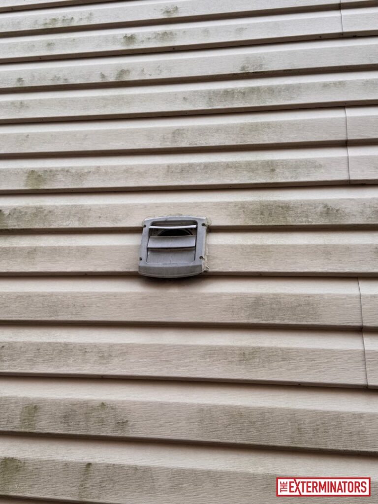 Mouse activity was likely the result of small gaps along the foundation and unsecured wall vents, which are common entry points on residential structures. Seasonal rodent pressure and ground-level access near landscaped areas can increase the likelihood of mice entering homes through these vulnerabilities.